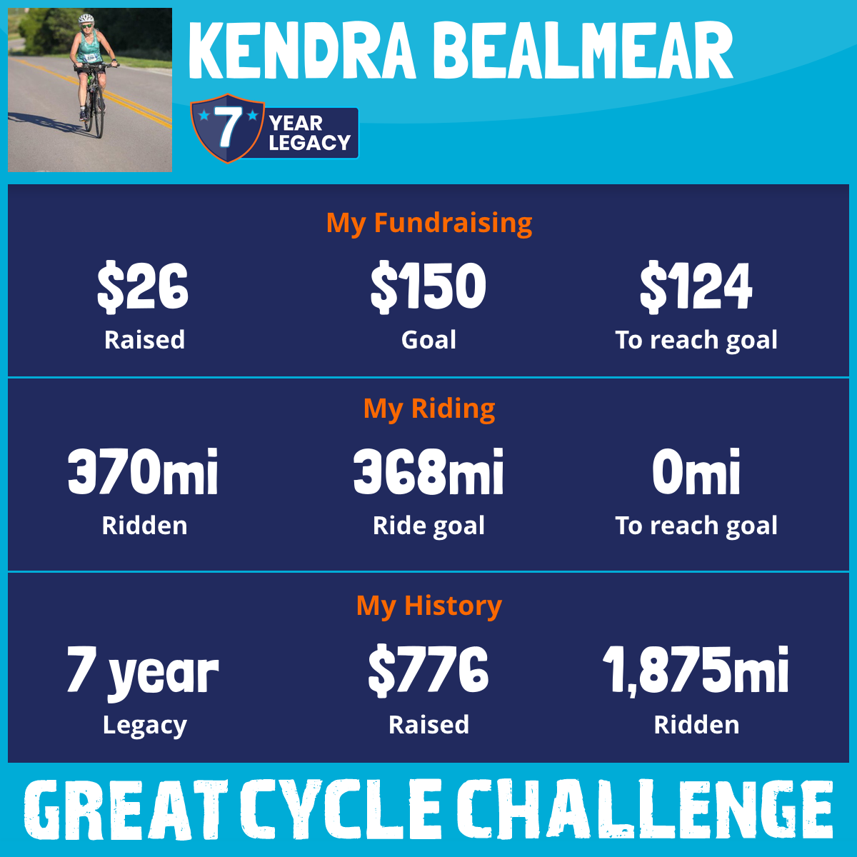 I am riding 368 miles in September in memory of my mom, Phyl Bean. Please sponsor me and support my challenge to fight kids' cancer and save little lives.