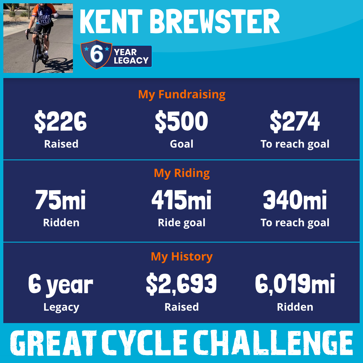 I am riding 415 mi for my wife, KMB. Please sponsor me and support my challenge to fight kids' cancer and save little lives.