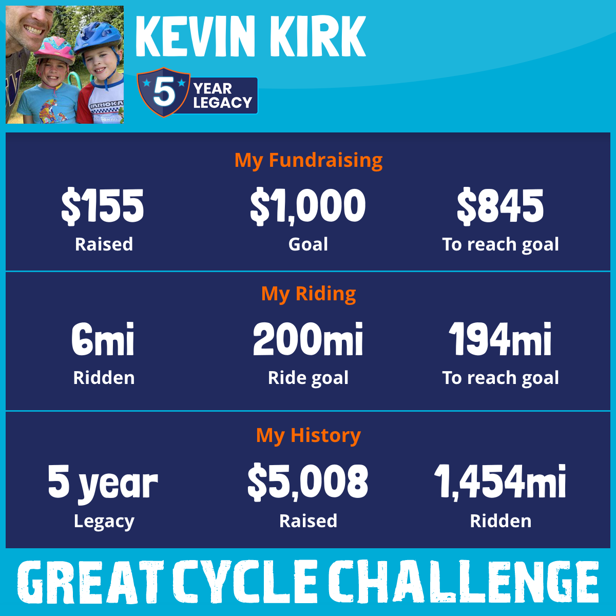 I am riding 200 mi for Shawn Ferguson. Please sponsor me and support my challenge to fight kids' cancer and save little lives.