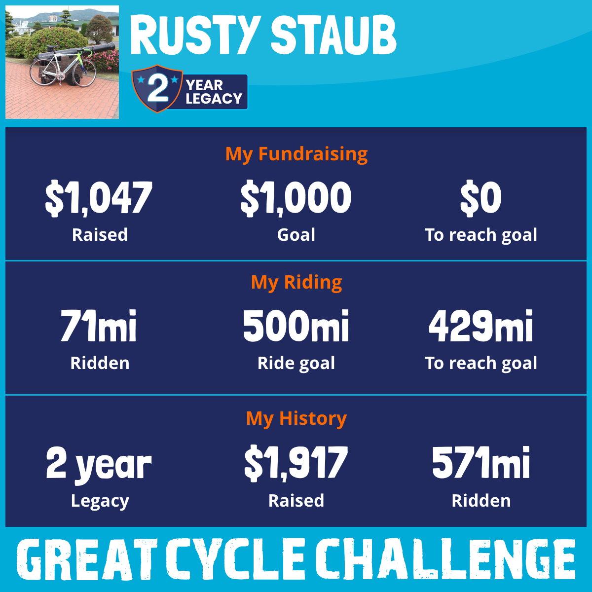 500 mi Ridden$870 Raised2021