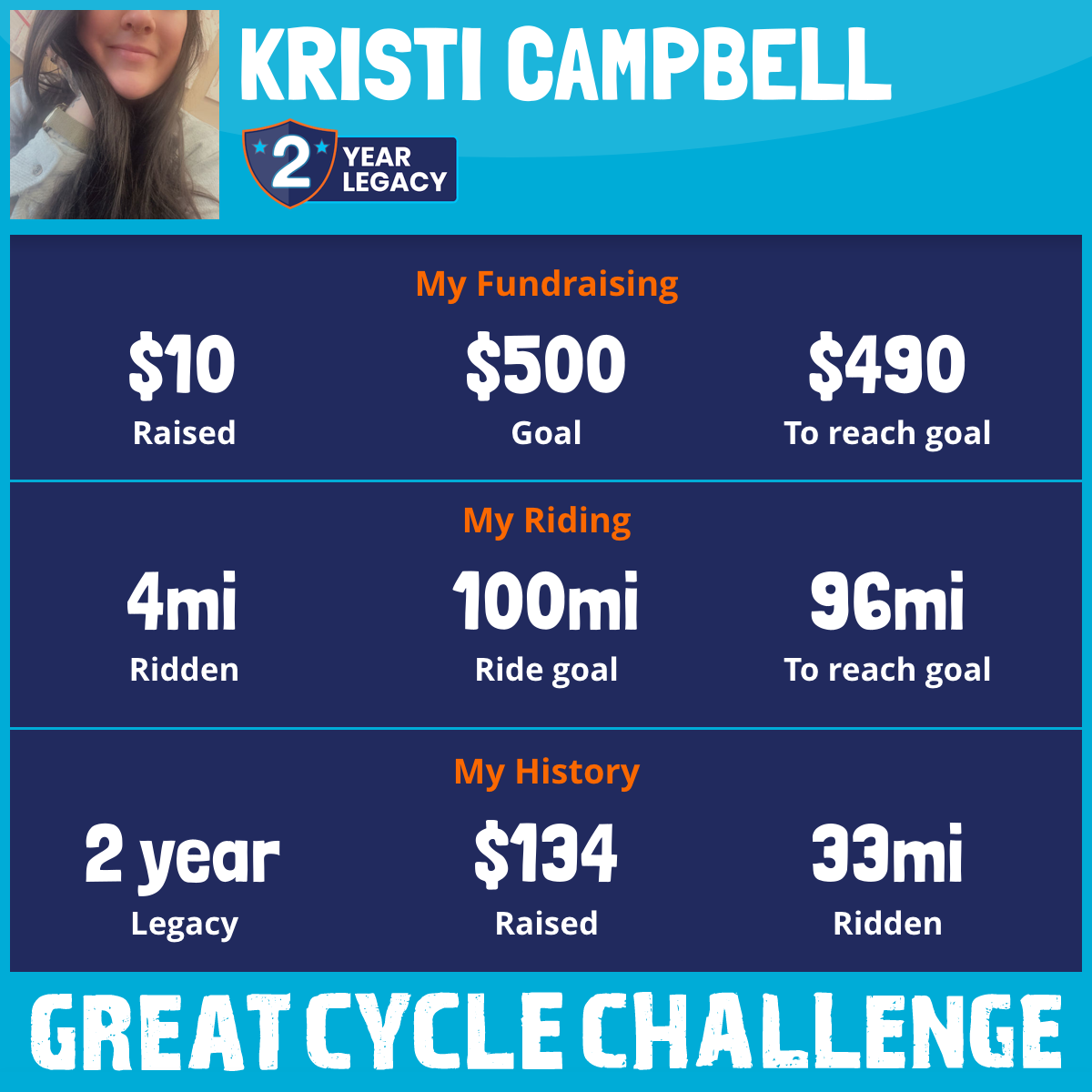 I am riding 100 mi to fight kids' cancer and save little lives. Please sponsor me to support my challenge!