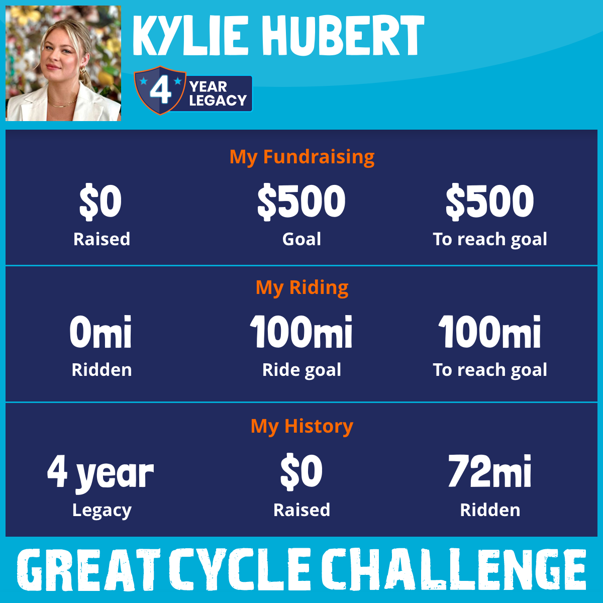 I am riding 100 mi for Donna. Please sponsor me and support my challenge to fight kids' cancer and save little lives.