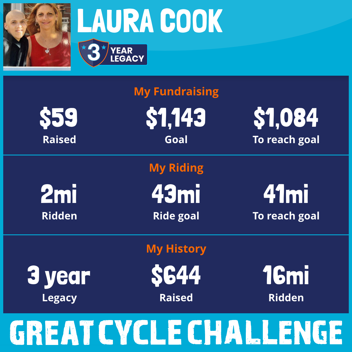 I am riding 43 mi in memory of Sean Cook. Please sponsor me and support my challenge to fight kids' cancer and save little lives.