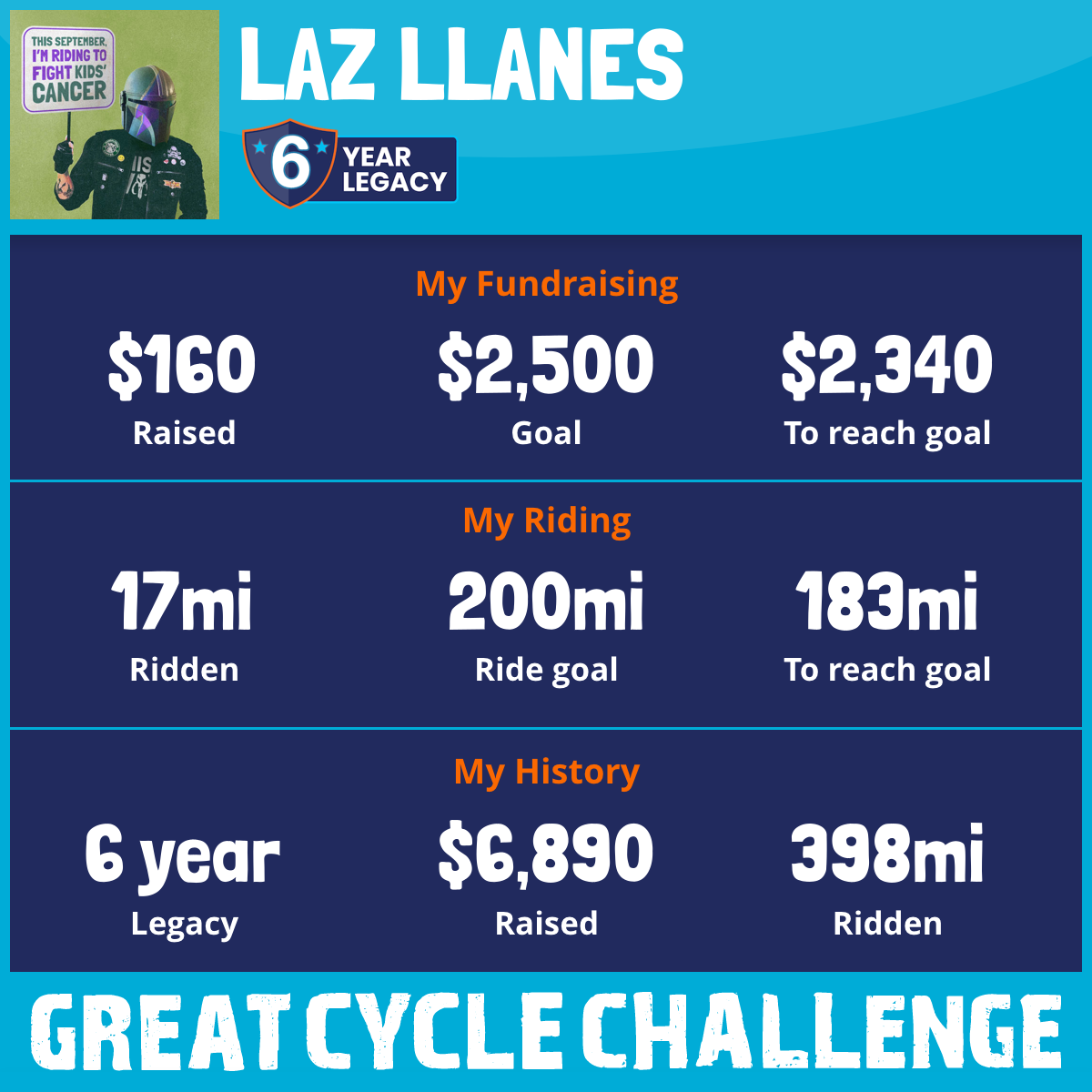 There are an estimated 15,780 American children (over 300,000 globally) diagnosed with cancer every year. For the last 4 years I’ve signed up for the Great Cycle Challenge to help raise money and awareness for childhood cancer, because I can’t sit idly and not do my part in making even a fraction of a difference. It could be my kids. It could be yours. Let’s give them all the fighting chance they deserve.