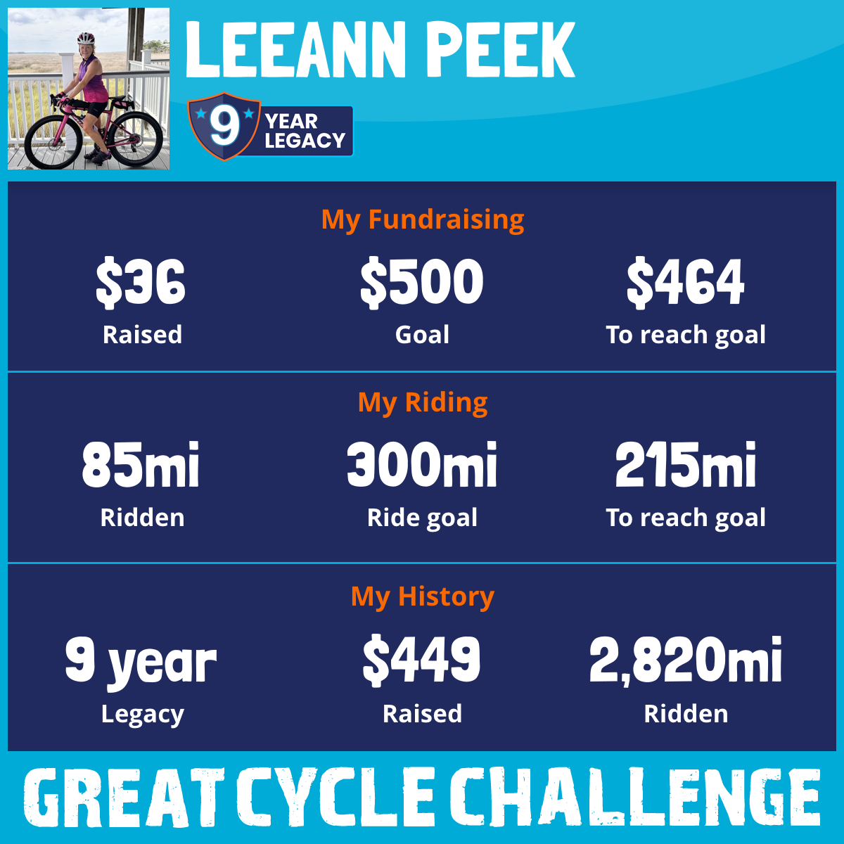 I am riding 300 mi to fight kids' cancer and save little lives. Please sponsor me to support my challenge!