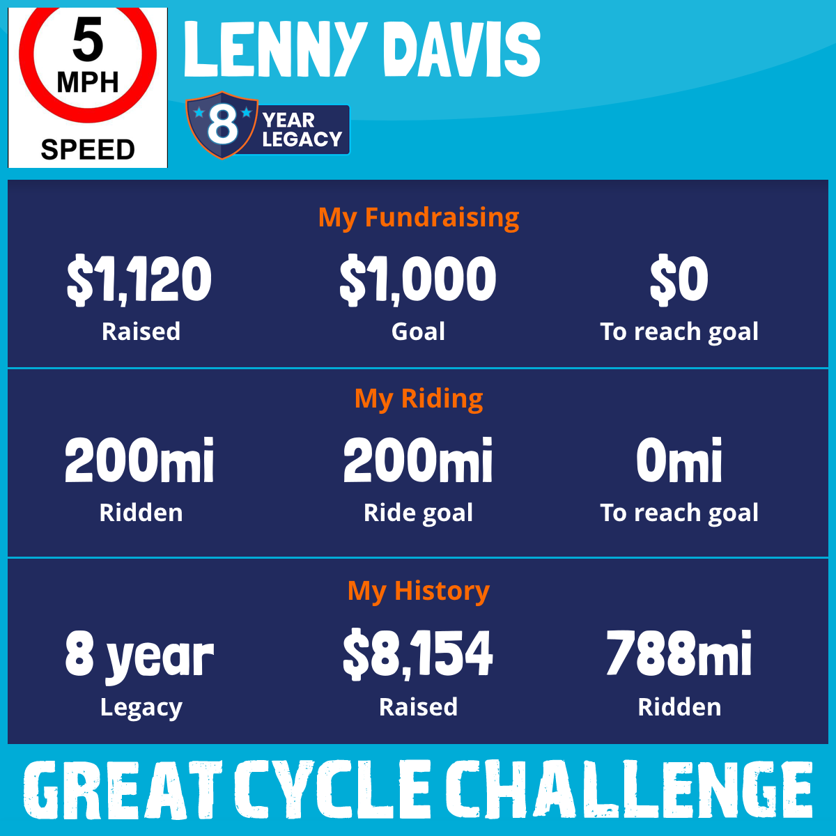 51 mi Ridden$162 Raised2020