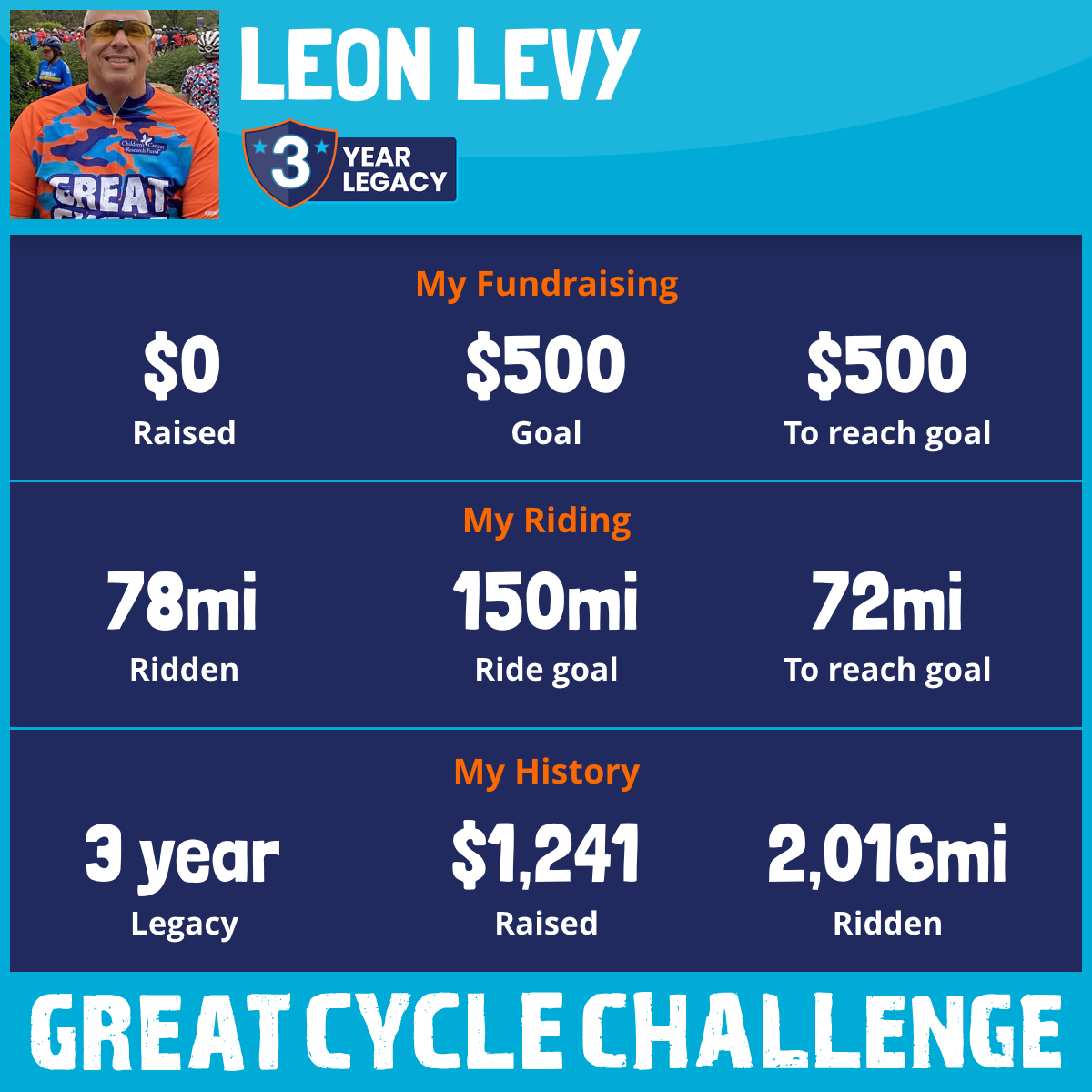 I am riding 150 mi to fight kids' cancer and save little lives. Please sponsor me to support my challenge!