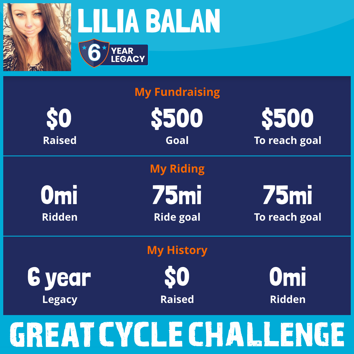 I've raised $0 My goal is $500 Donate Now