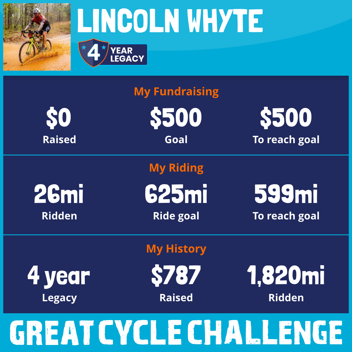 1,231 mi Ridden$476 Raised2024