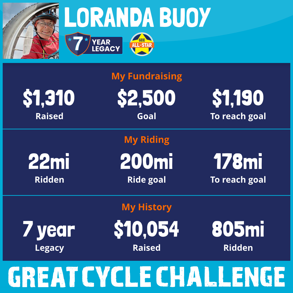 200 mi Ridden$1,001 Raised2022