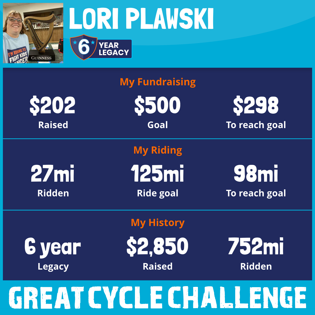 So I am raising funds through my challenge to help these kids and support Children's Cancer Research Fund to allow them to continue their work to develop lifesaving treatments and find a cure for childhood cancer.