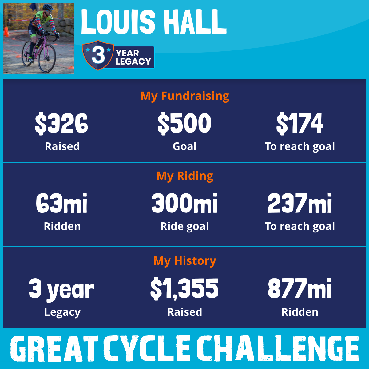 I am riding 300 mi for My Dad, Lou Hall Sr.. Please sponsor me and support my challenge to fight kids' cancer and save little lives.
