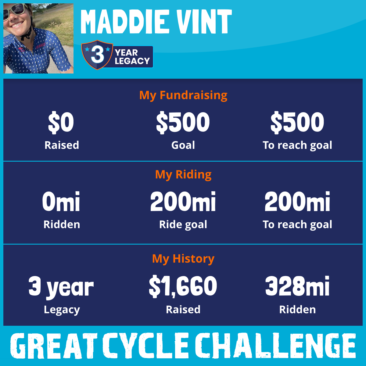 I am riding 200 mi in memory of my aunty, Pam Prifogle. Please sponsor me and support my challenge to fight kids' cancer and save little lives.
