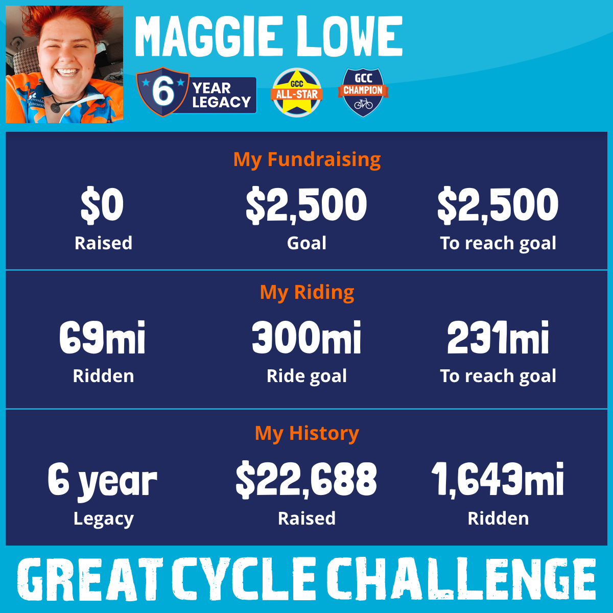 192 mi Ridden$4,447 Raised2025