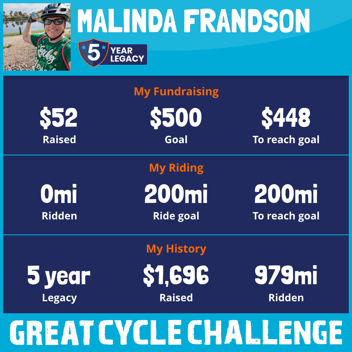 I am riding 200 mi for Christine. Please sponsor me and support my challenge to fight kids' cancer and save little lives.