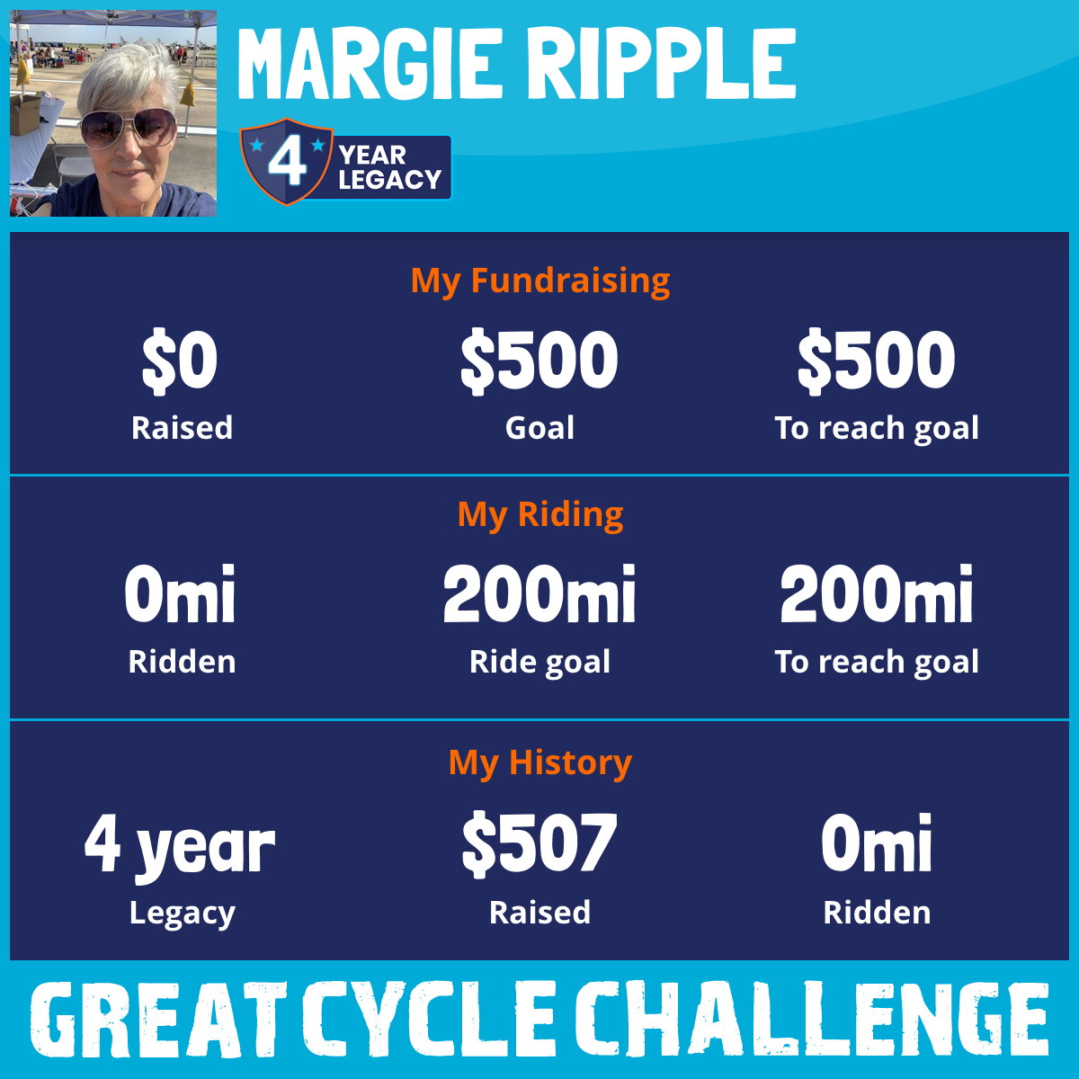 I am riding 200 mi for Patti Williams. Please sponsor me and support my challenge to fight kids' cancer and save little lives.