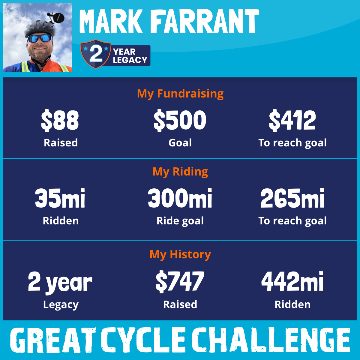 My dad Anthony has been living with cancer for nine years now. When we found out he was diagnosed with stage 4 small cell lung cancer they said he only about an 11% chance to live. Thanks to some experimental treatment research funded by these types of events and the good people that donate, he is still here and my kids get to know their PawPaw. This is why I’m riding.