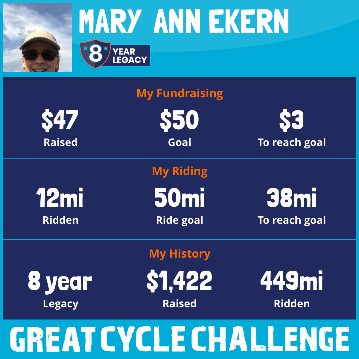 50 mi Ridden$90 Raised2024