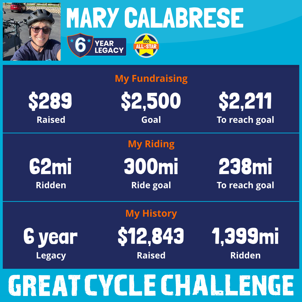 This September, for the 6th year, I'm riding in the Great Cycle Challenge to fight kids' cancer!