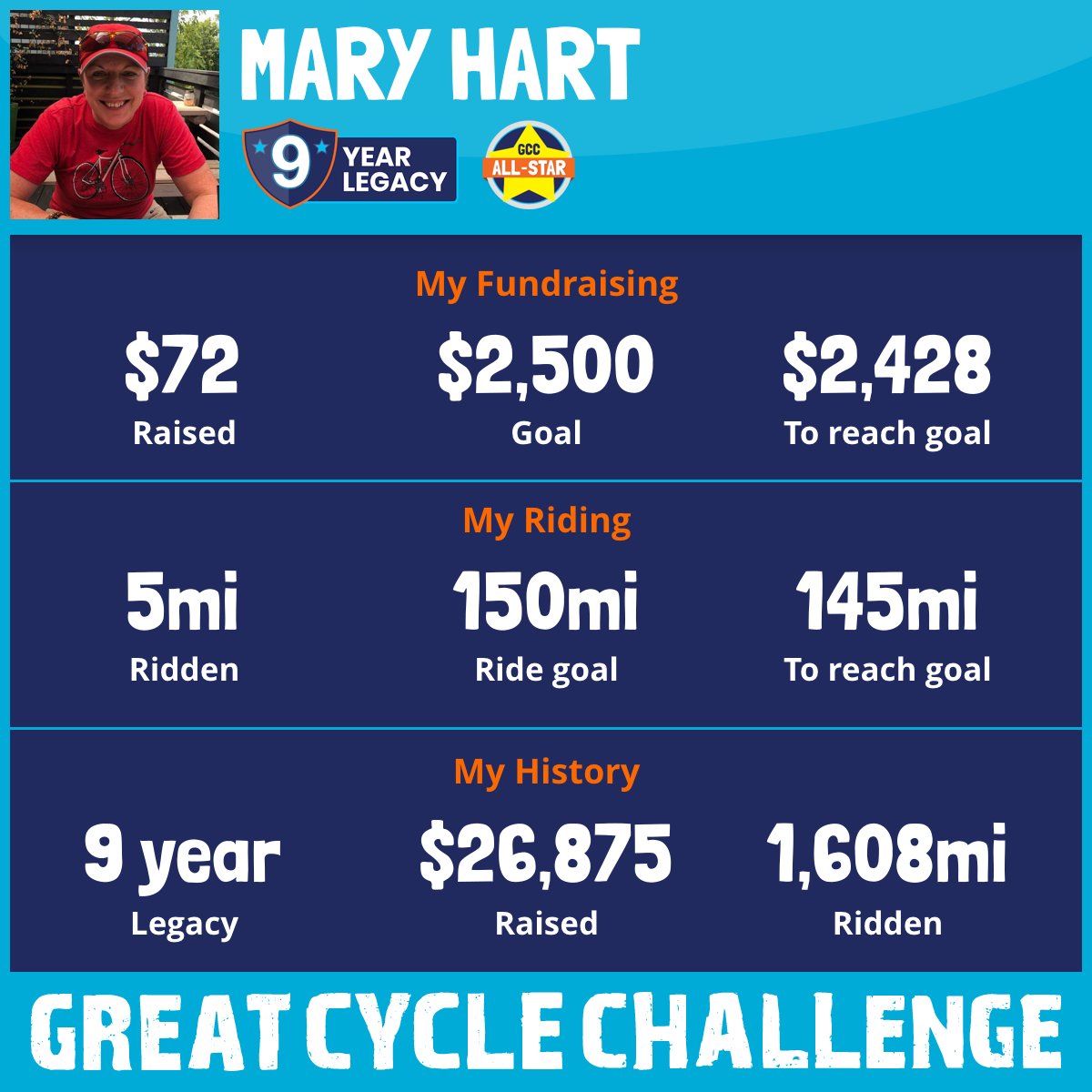 98 mi Ridden$3,479 Raised2025