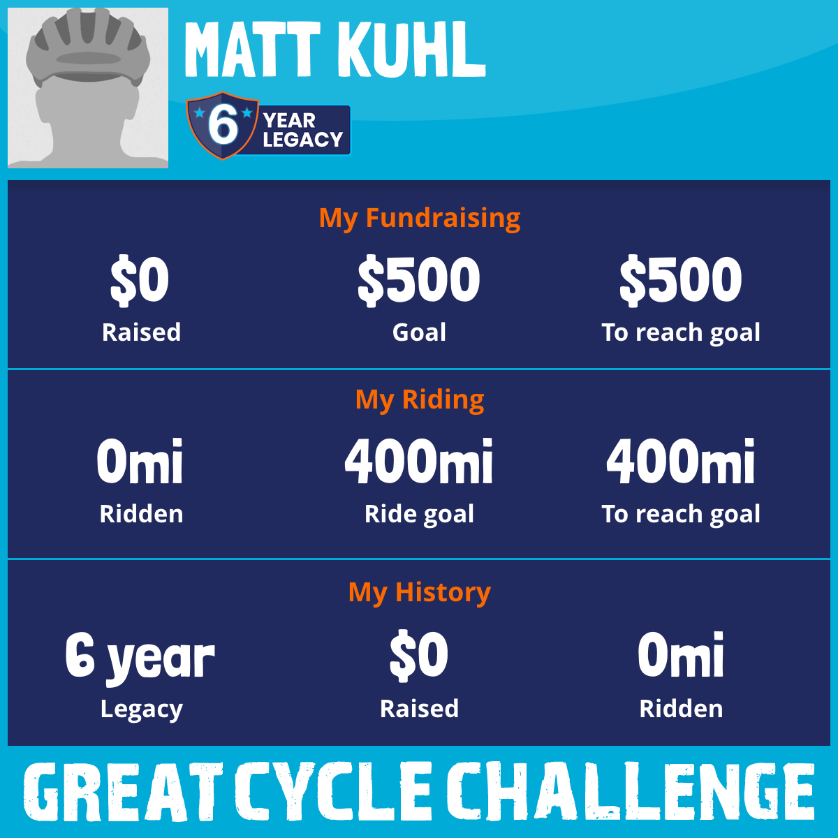 I am riding 400 mi in memory of Chris. Please sponsor me and support my challenge to fight kids' cancer and save little lives.