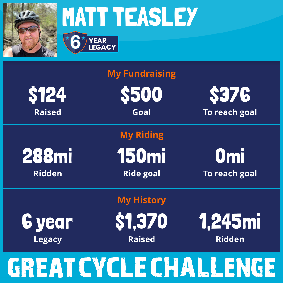I am riding 150 mi to fight kids' cancer and save little lives. Please sponsor me to support my challenge!