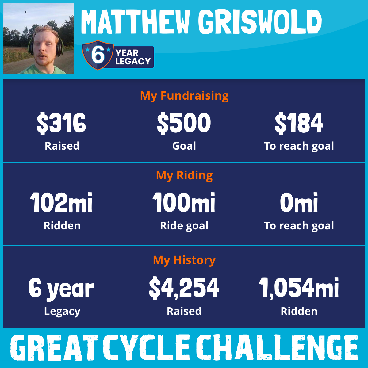 I've raised $316 My goal is $500 Donate Now