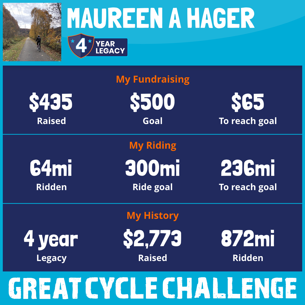 This September, I am taking part in the Great Cycle Challenge to fight kids' cancer! This is my third year riding in the Great Cycle Challenge. If you were kind enough last time to donate - thank you! If you're able to donate once again, I truly appreciate it!