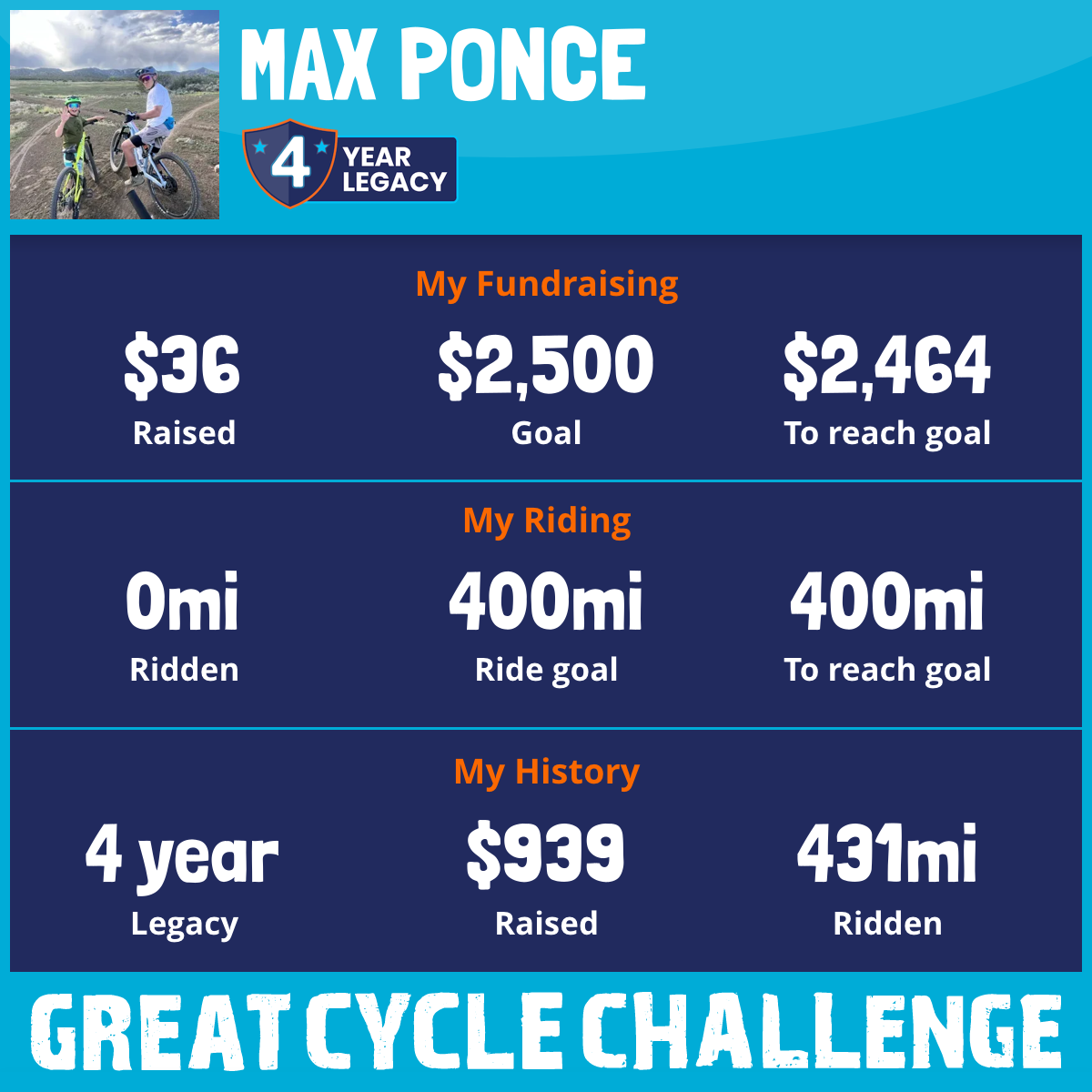 I am riding 400 mi to fight kids' cancer and save little lives. Please sponsor me to support my challenge!