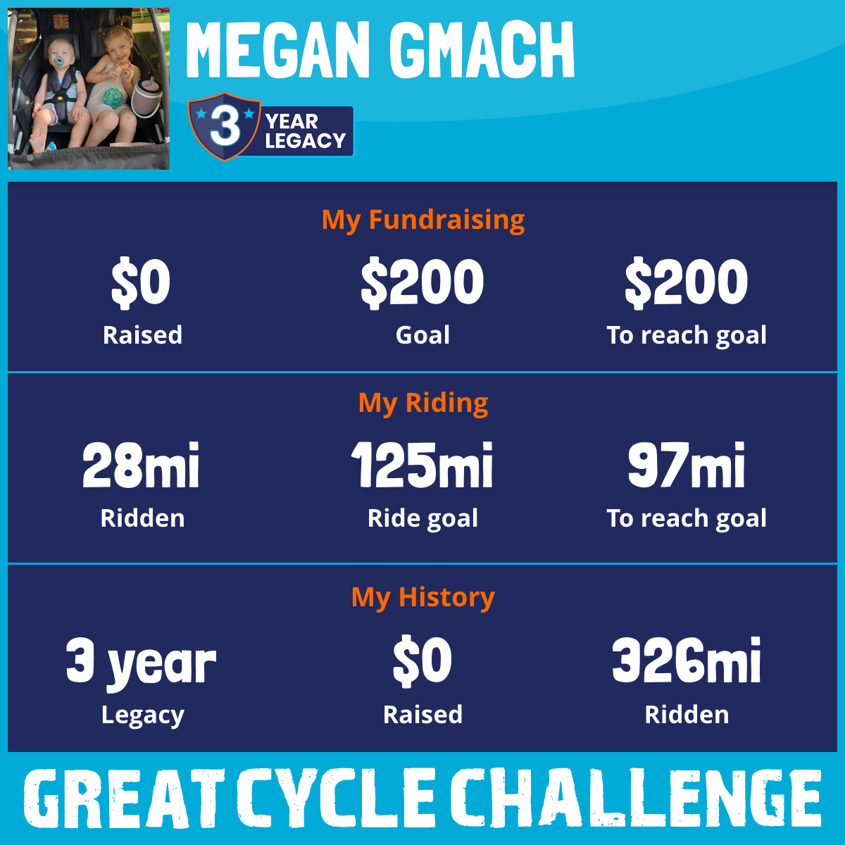 I am riding 125 mi to fight kids' cancer and save little lives. Please sponsor me to support my challenge!