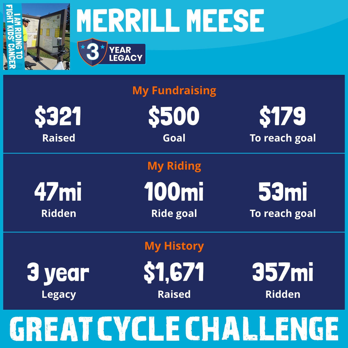 So I am raising funds through my challenge to help these kids and support Children's Cancer Research Fund to allow them to continue their work to develop lifesaving treatments and find a cure for childhood cancer.