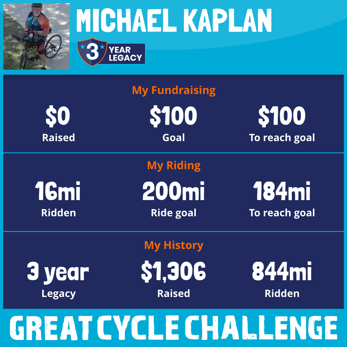 Last time I did this was in 2022, when I rode over 500 miles for the month of September raising money for the kids. I rode 3,233 miles that year, 127 rides (2022). 2023 and 2024 SUCKED for riding because of my Melanoma (Stage FOUR) Cancer--the drugs kicked my ass. I'm riding again this year, nowhere near that 2022 total but I'm on the bike, that's what counts. Wanted to ride 200 miles for this fight, this month, but downgraded it to 100 miles. I have one 10 miler left, on the 30th, to get to the 100 miles and my $100 goal. I'm not asking for support this year! Just doing it because it needs to be done! I'd love to ride (1 ride) my age this December, I'll be 64. I don't know if I can pull that off, but I'll try. I did it in 2022. GET YOUR SKIN CHECKED AND STOP SCREWING AROUND AND PUTTING IT OFF. My MELANOMA (SKIN CANCER!!!) was at Stage 3C when discovered! Had spread to lymph nodes! The earlier discovery the BETTER. GET IT DONE!!!! And get your dang COLONOSCOPY DONE! It kills both Men & Women! Peace out!