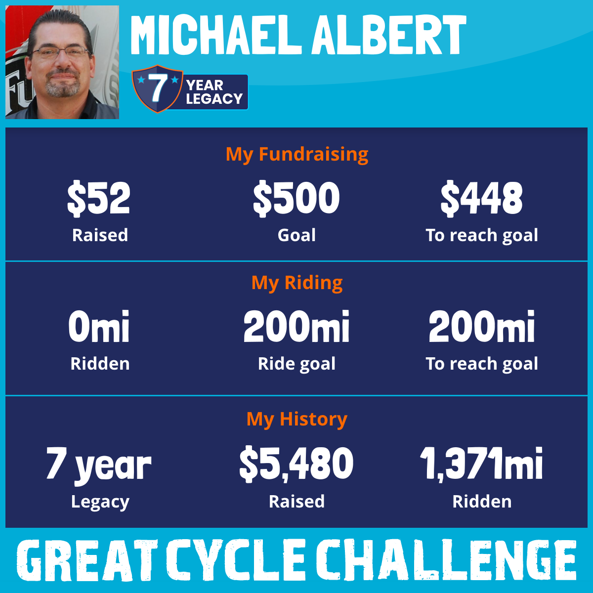 187 mi Ridden$1,210 Raised2021