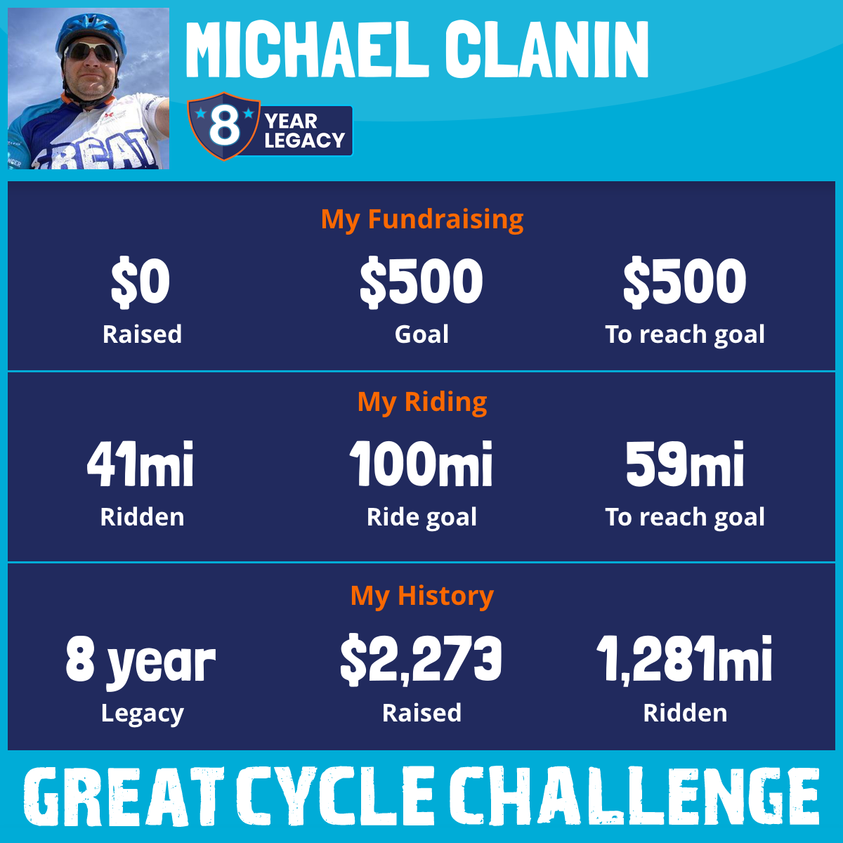 I am riding 100 mi in memory of My grandfather Robert, mother-in-law Carolyn & my good friend Chuck. Please sponsor me and support my challenge to fight kids' cancer and save little lives.