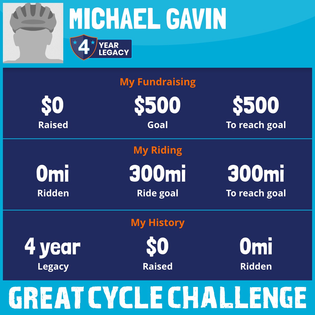 I am riding 300 mi for my friend, Doug. Please sponsor me and support my challenge to fight kids' cancer and save little lives.