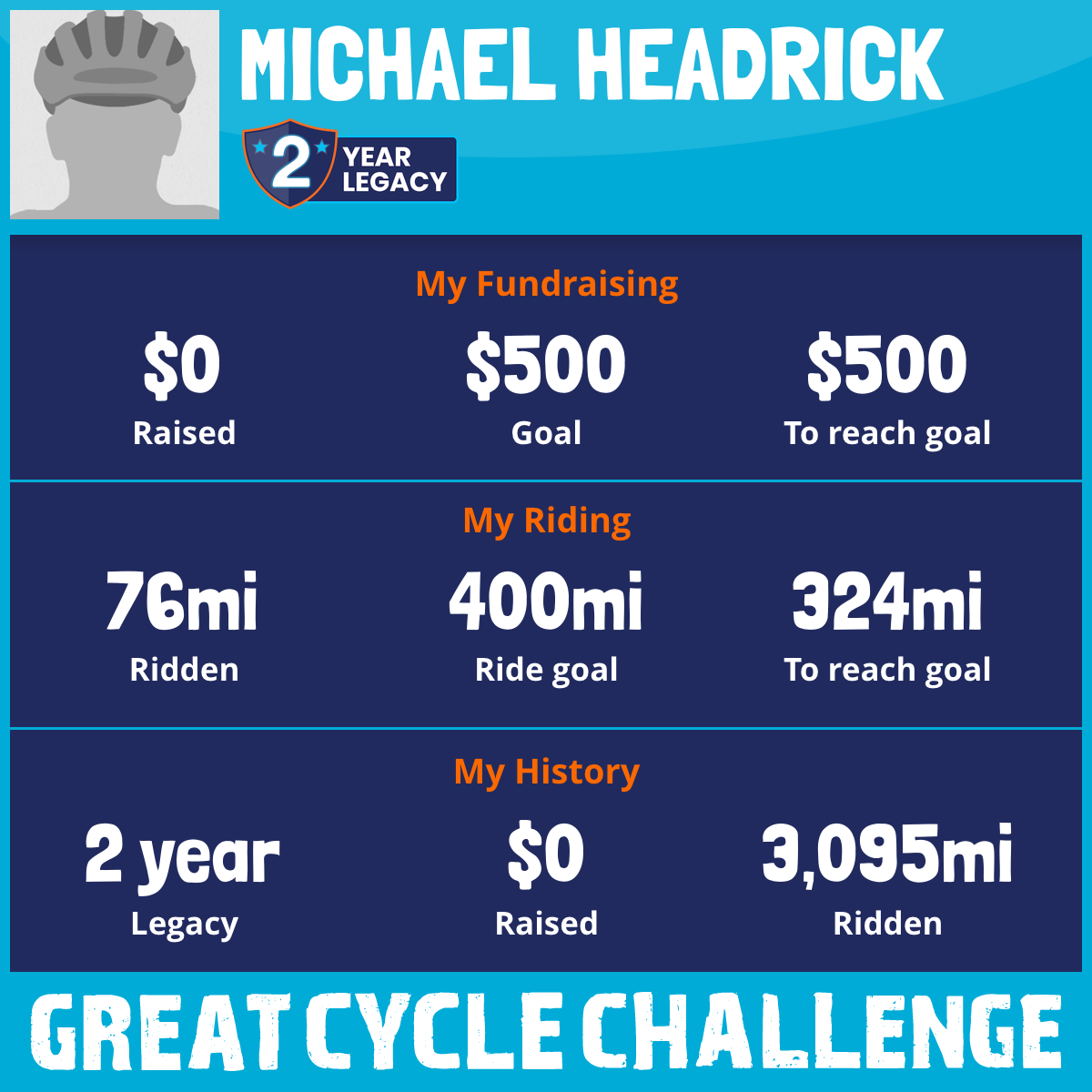 I am riding 400 mi in memory of Keith. Please sponsor me and support my challenge to fight kids' cancer and save little lives.