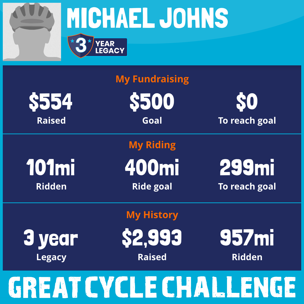 452 mi Ridden$1,765 Raised2023