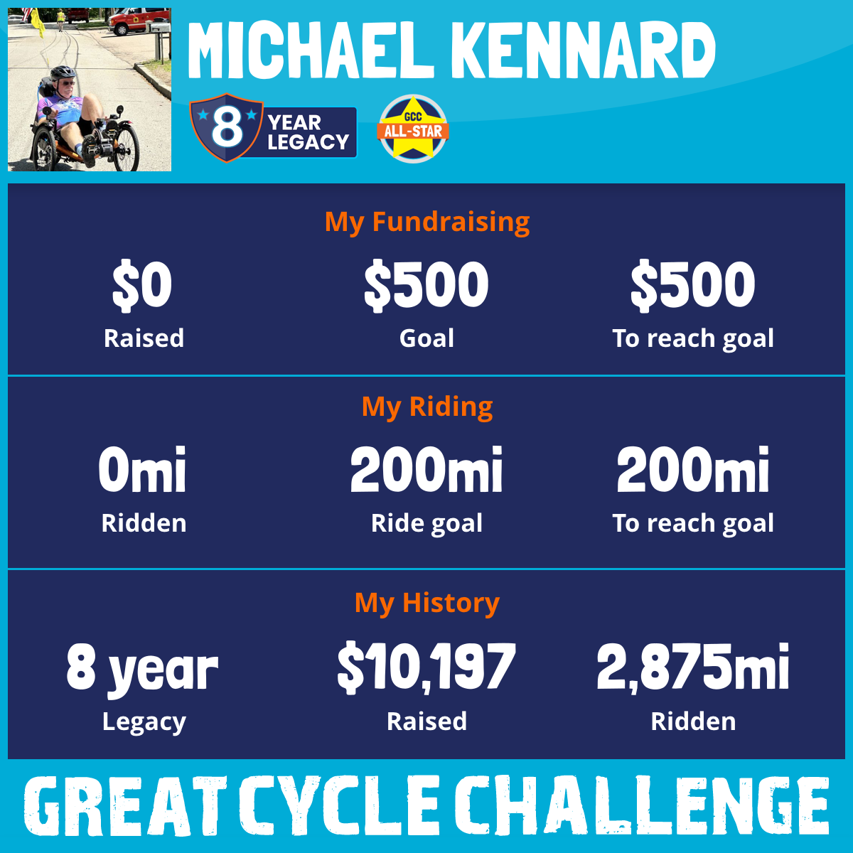 287 mi Ridden$787 Raised2021