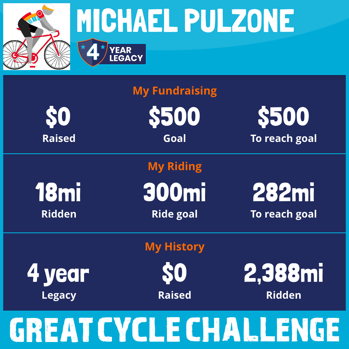 I am riding 300 mi to fight kids' cancer and save little lives. Please sponsor me to support my challenge!