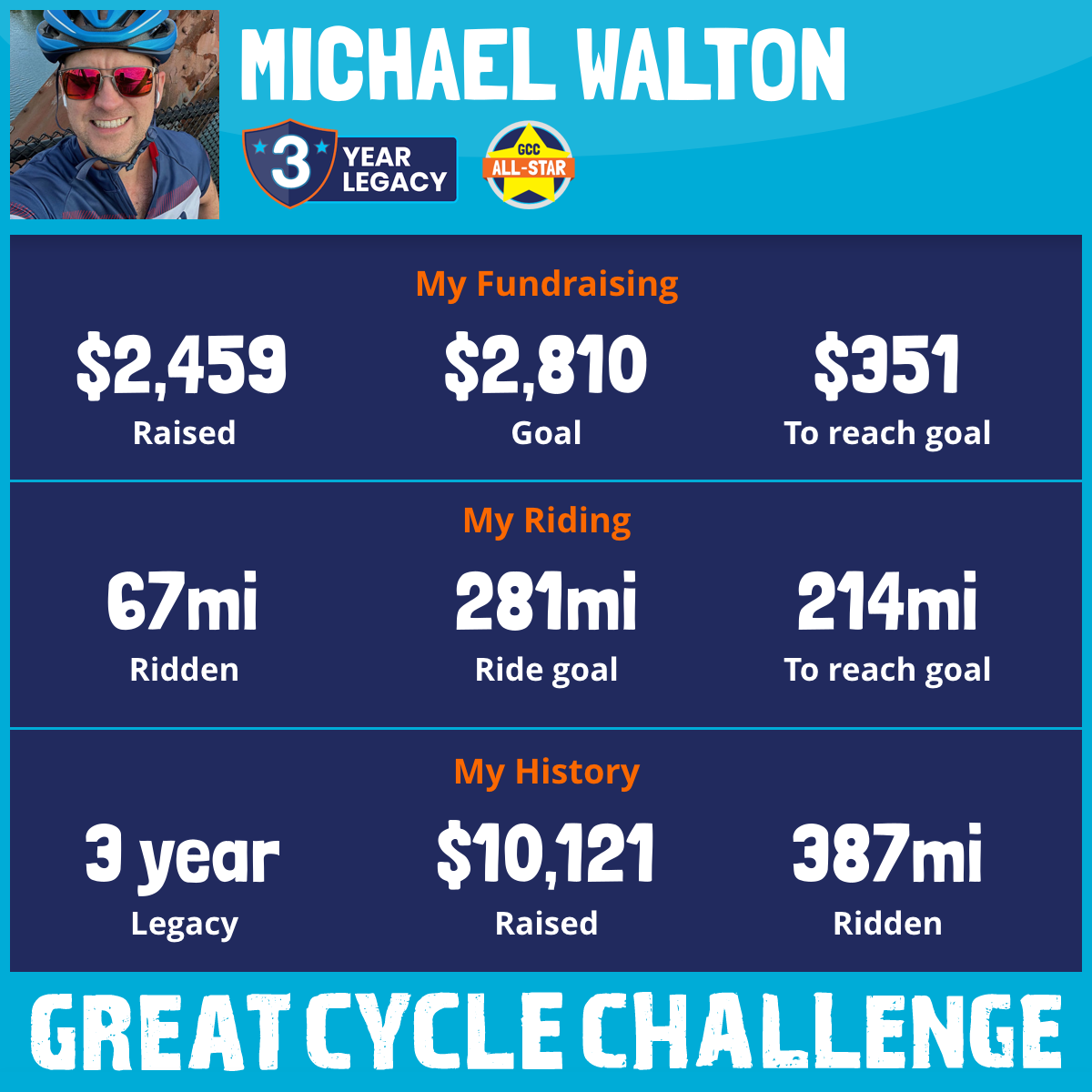 I am riding 281 mi to fight kids' cancer and save little lives. Please sponsor me to support my challenge!