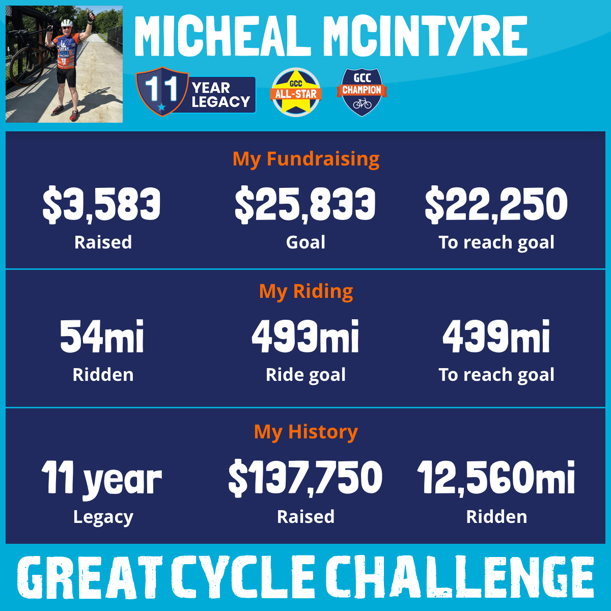 1,000 mi Ridden$21,834 Raised2023