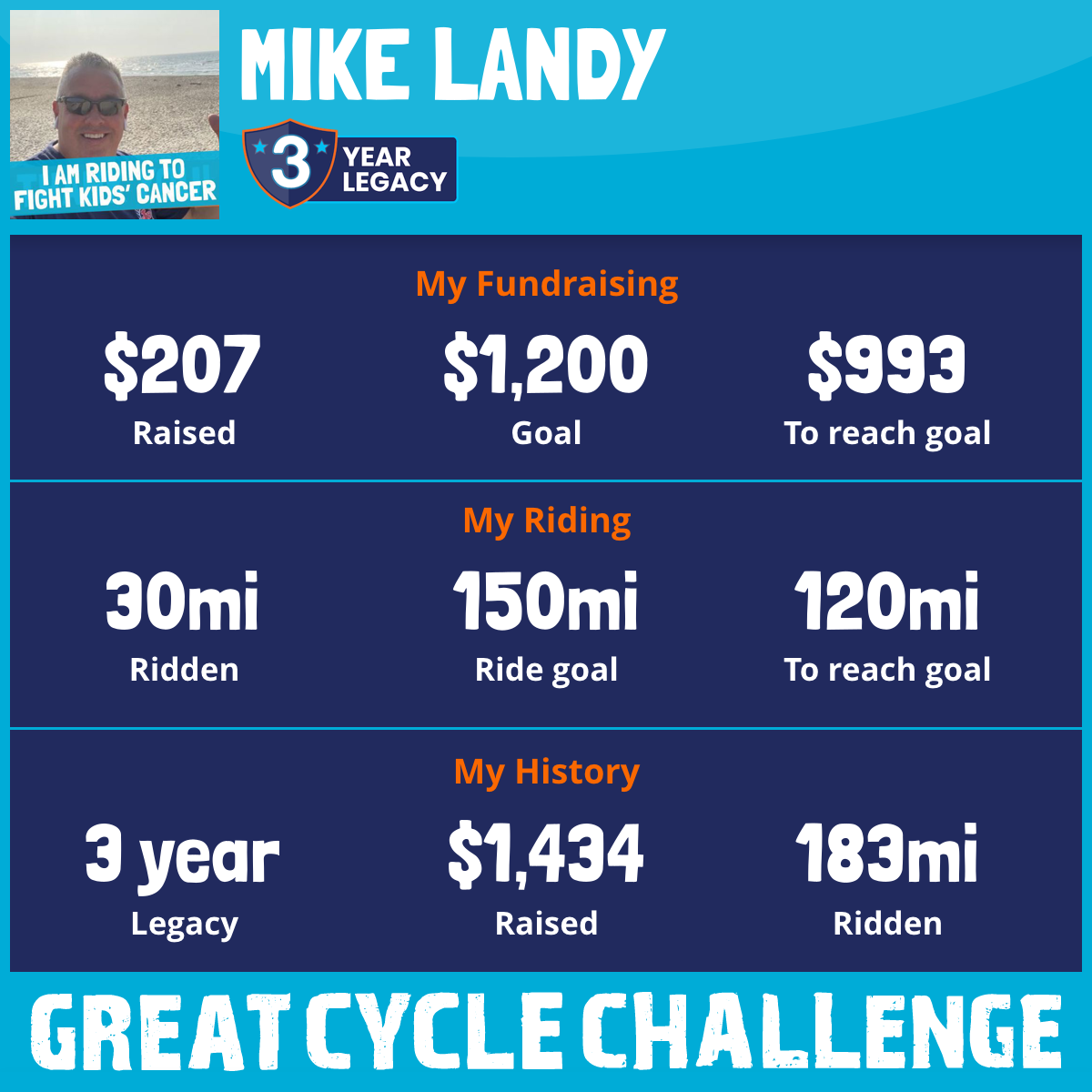 I am riding 150 miles.  Please sponsor me and support my challenge to fight kids' cancer and save little lives.
