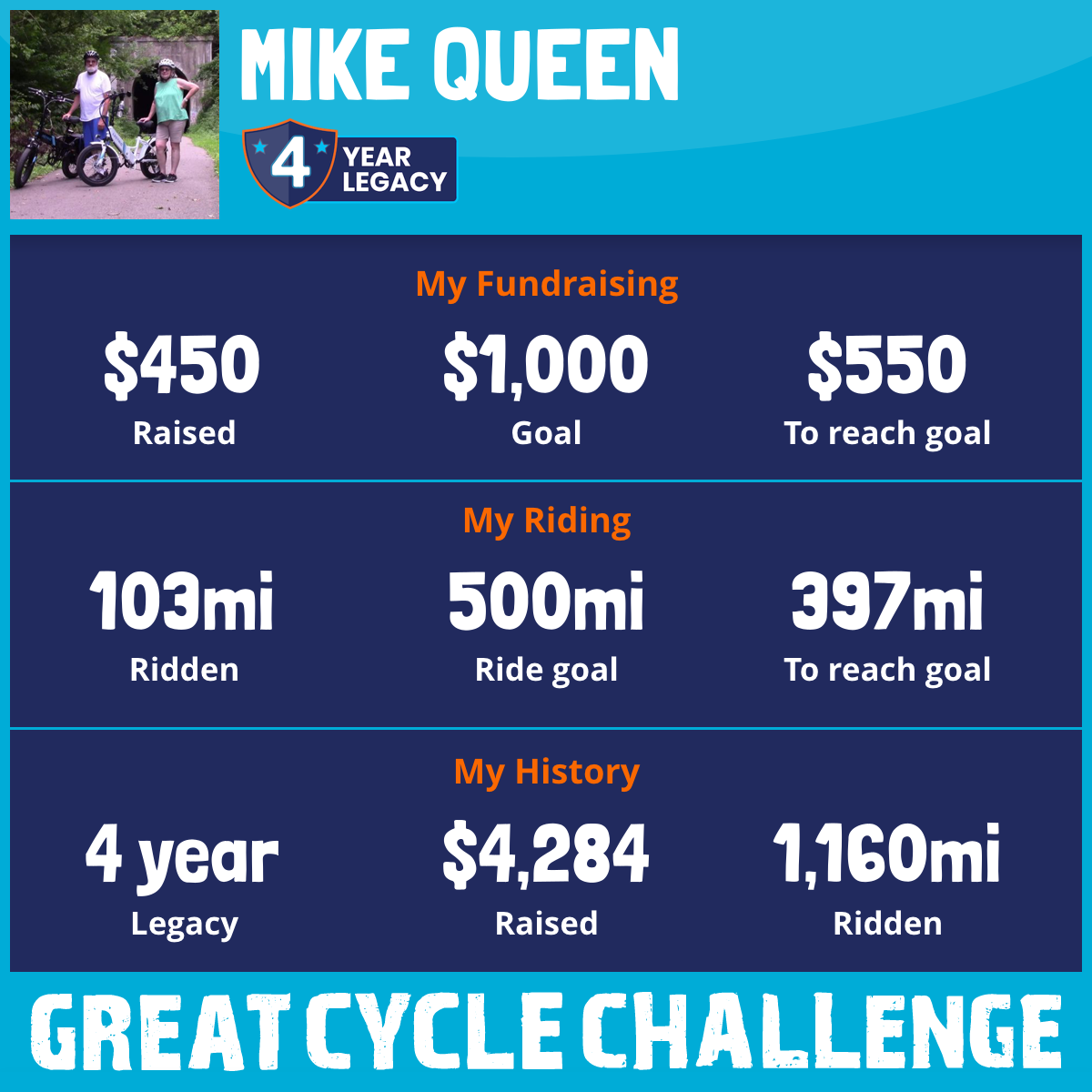 481 mi Ridden$1,662 Raised2024