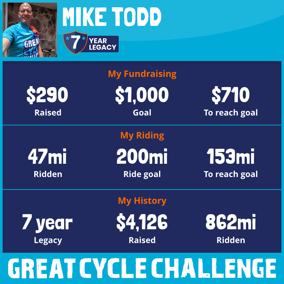 2025 will mark my 7th year taking part in the Great Cycle Challenge to fight kids' cancer!