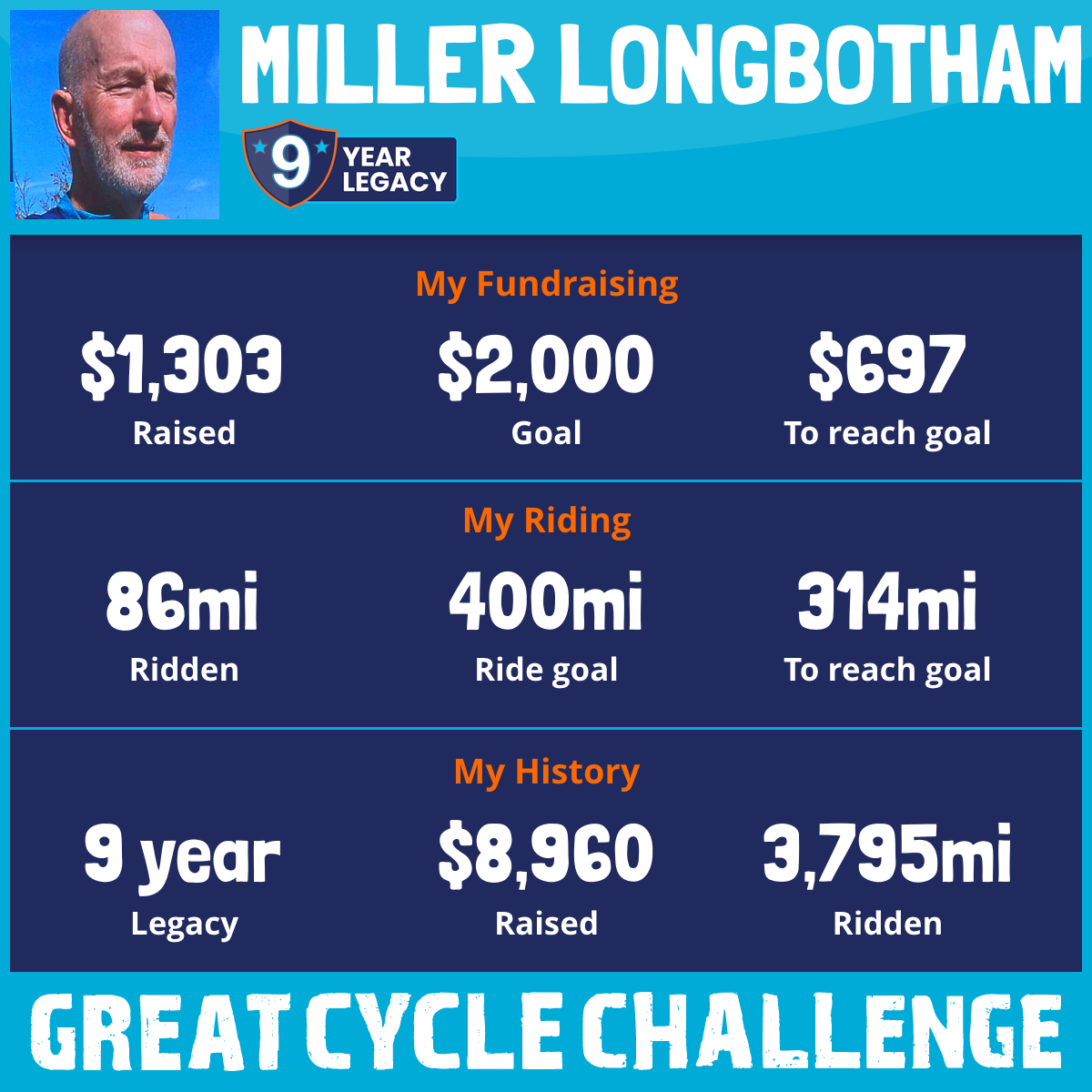 417 mi Ridden$1,051 Raised2020