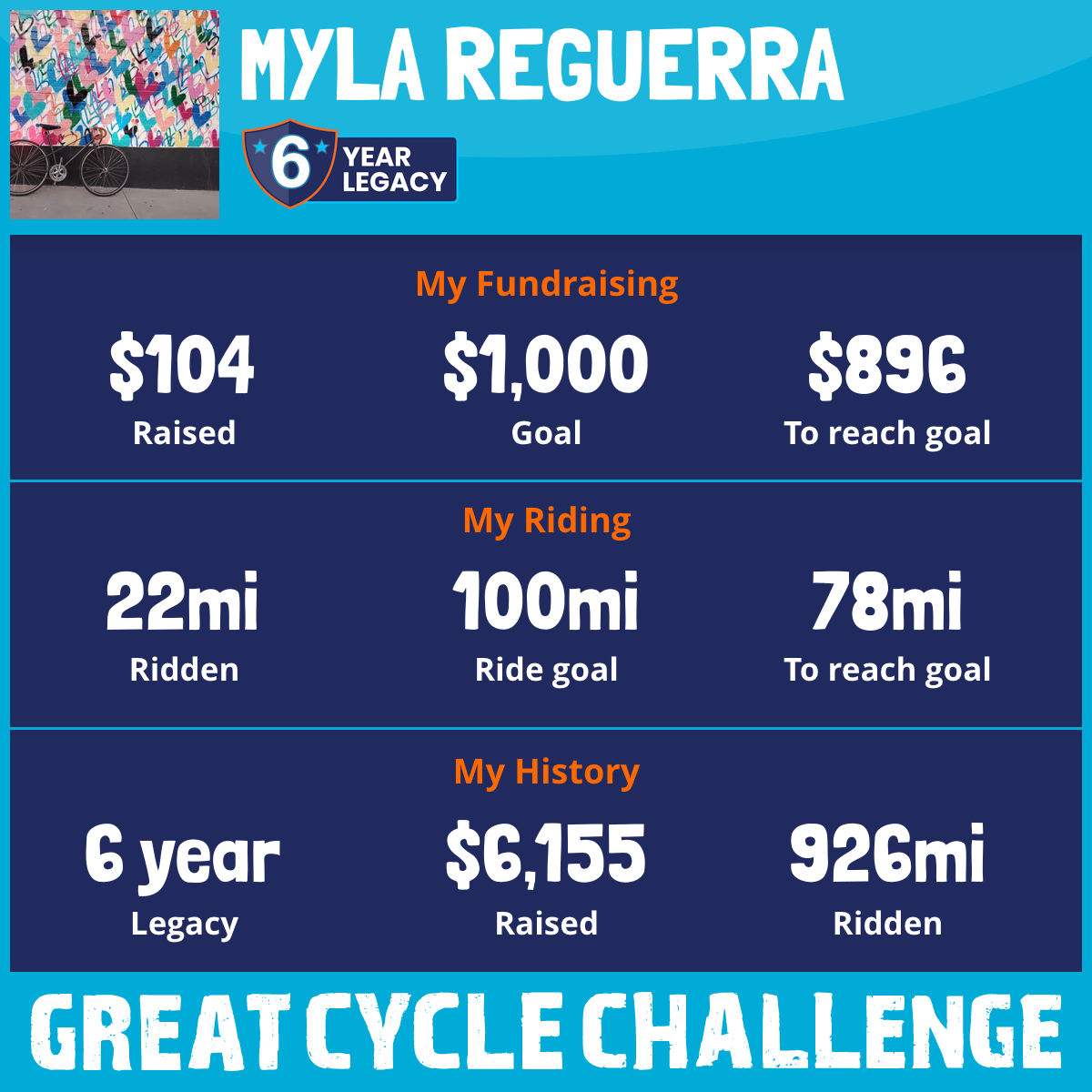 206 mi Ridden$1,206 Raised2023
