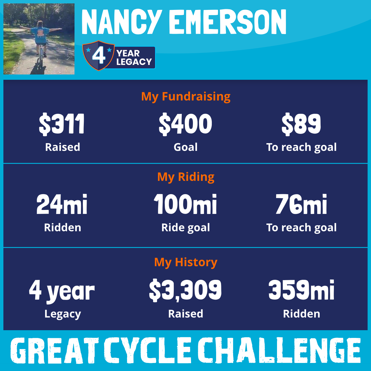 126 mi Ridden$1,186 Raised2023