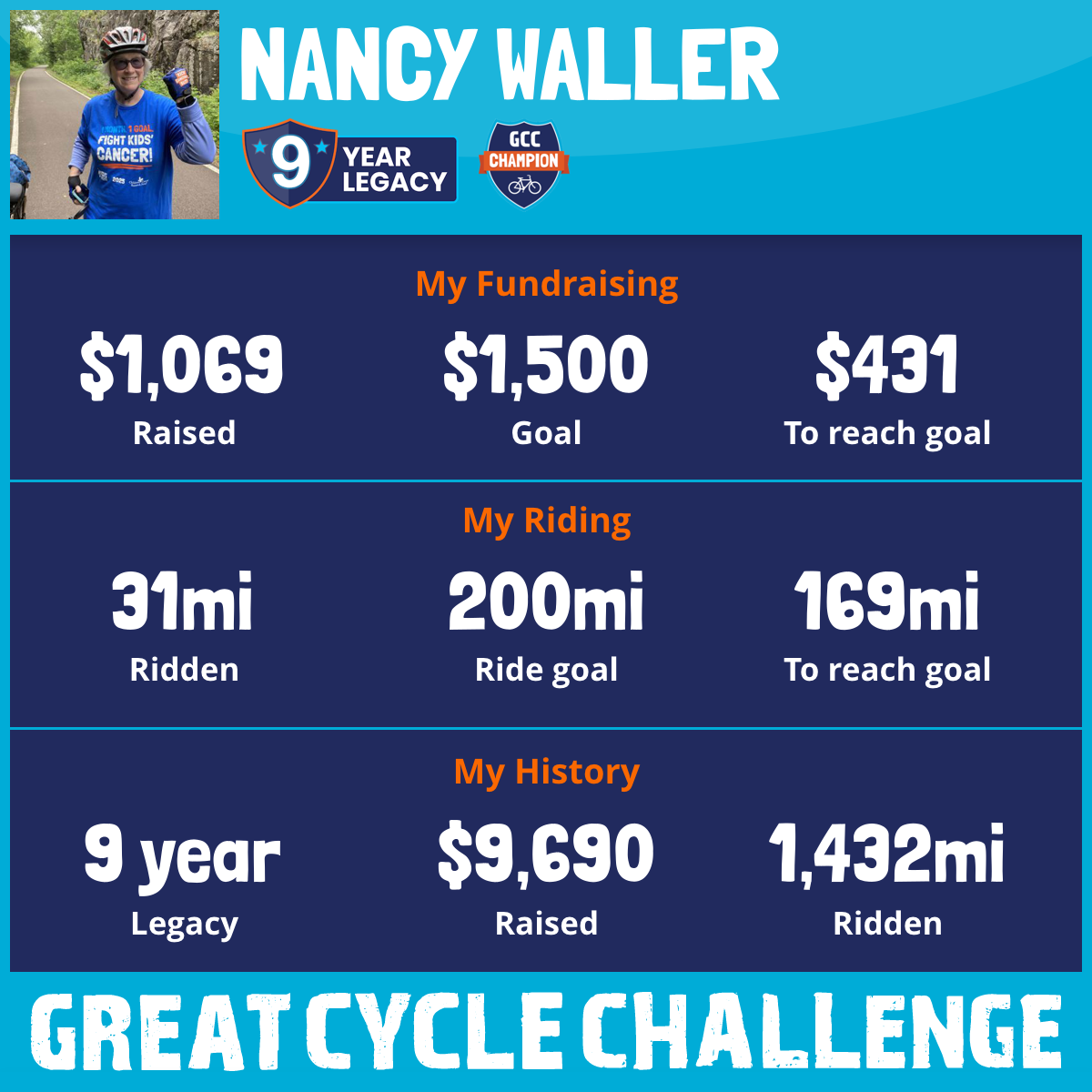 So I am raising funds through my challenge to help these kids and support the Children's Cancer Research Fund to allow them to continue their work to develop lifesaving treatments and find a cure for childhood cancer.