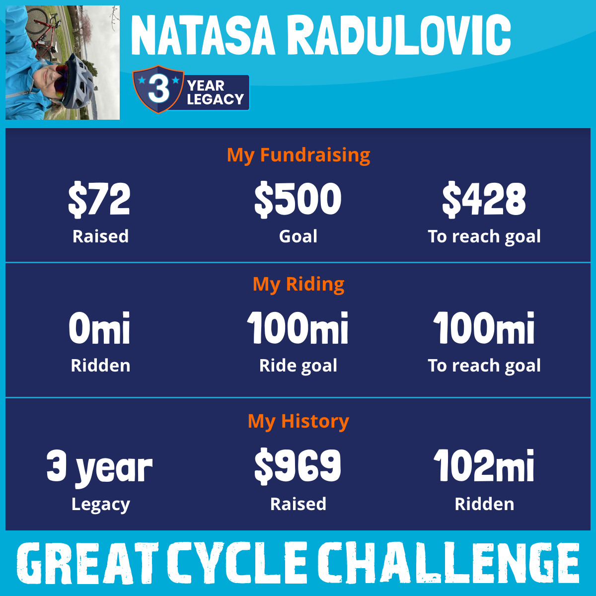I am riding 100 mi in memory of Vojo. Please sponsor me and support my challenge to fight kids' cancer and save little lives.