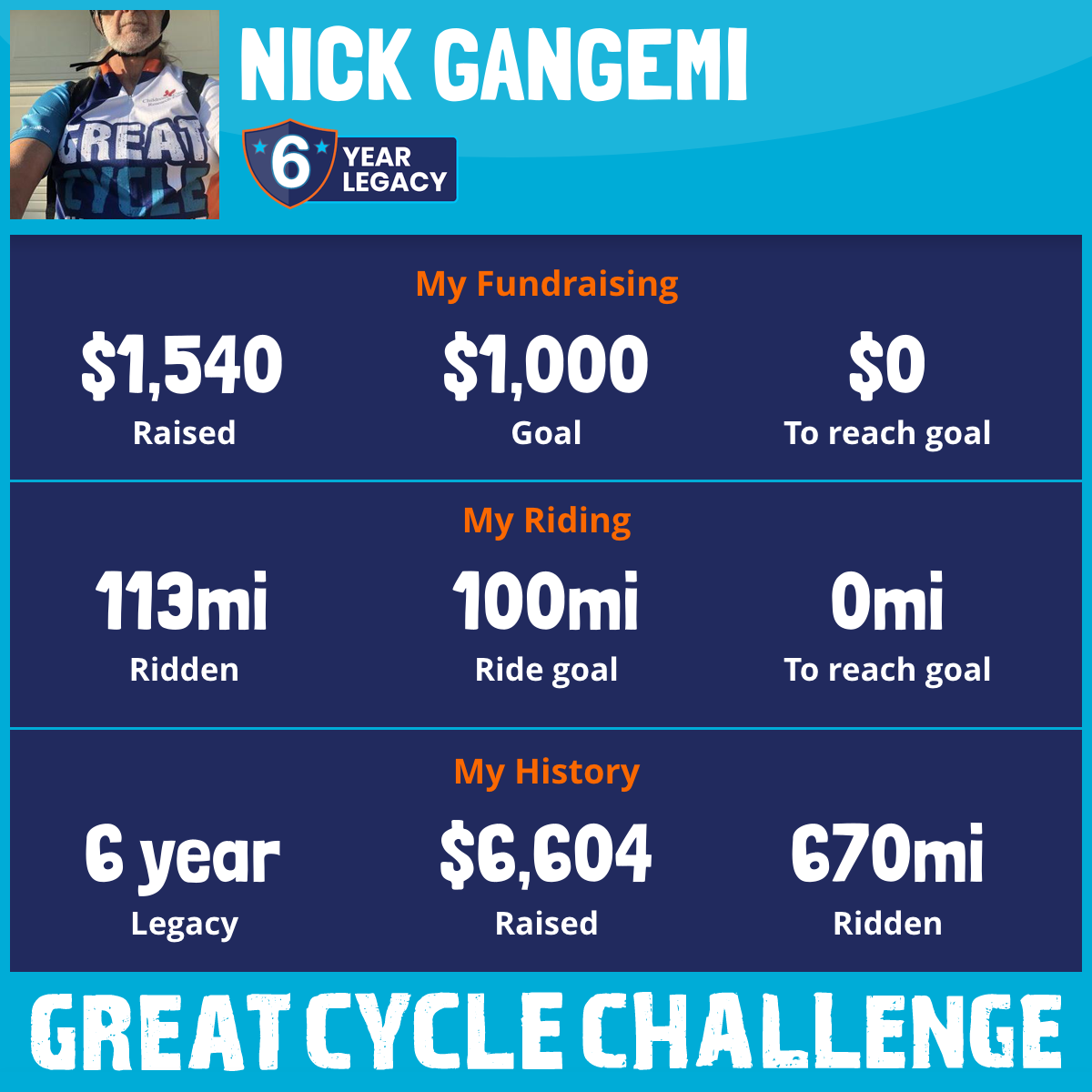 120 mi Ridden$1,326 Raised2023
